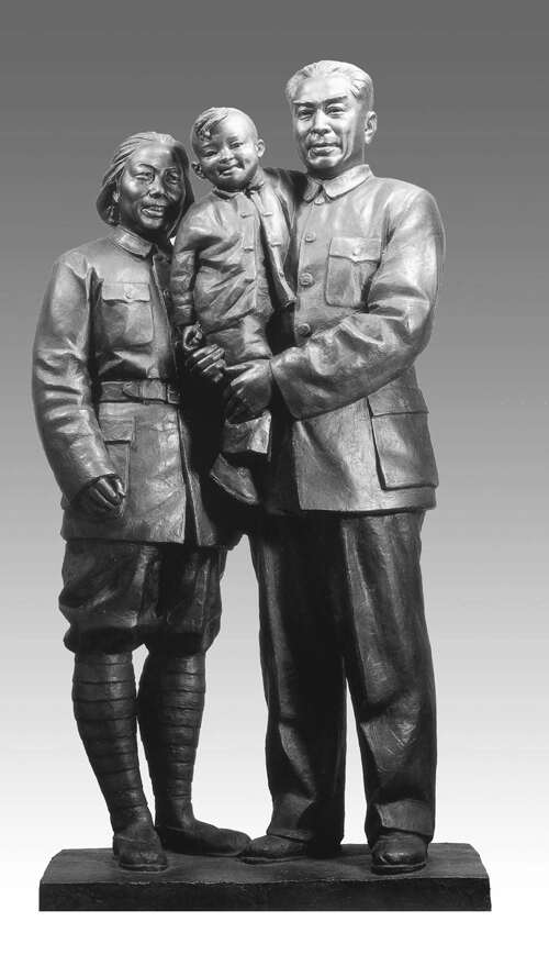 程允贤先生的肖像雕塑中,往往表现出一种超越现实真实的“像”。这首先是一种情感上的真实。比如在实际生活中,孙中山先生身材较矮小,头显得大,身体的高矮并不反映他的本质特征。在塑造孙中山塑像时,程允贤先生有意把他的身体加高一些,把他表现成气宇轩昂、倜傥潇洒的人物,突出了孙中山先生在人民心目中和在历史中的形象。他还善于在雕塑中准确地抓住反映在人物身上的时间变化,及其不同时期的精神气质。如延安时期的毛泽东和开国大典时的毛泽东。人物被置入丰富的背景和宽阔的人生中,表现为一种嵌入时间的“像”。