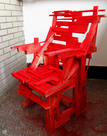 隋美时同学的作品《童年往事》(2008级硕士研究生二年级,获鲁迅美术学院雕塑创造奖三等奖)儿时的梦与嬉戏定格在作者的脑海中,也定格在作品的形式中,临时性材料组合成单纯与朦胧的视觉形象。表达的稚拙更加符合作品的主题,写意的手法与遥远的印象相融在一起。